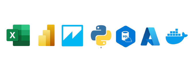 Excel, Power BI, Quicksight, Python, Google Analytics, Generative Agents, SQL, Azure, Docker